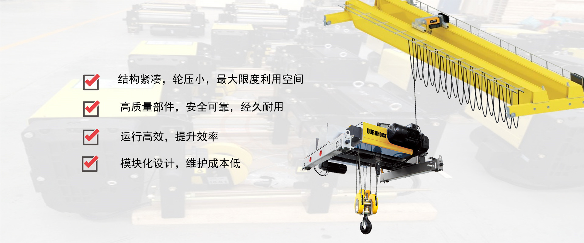 密歇爾起重機械(杭州)有限公司,作為專業(yè)的電動葫蘆和起重機及物料起重輸送系統(tǒng)設計、制造和銷售綜合服務商,自公司創(chuàng)建以來,勇于創(chuàng)新,追求技術(shù)進步,并依托我們的技術(shù)研發(fā)中心,現(xiàn)已成為國內(nèi)起重機械行業(yè)的新興優(yōu)秀企業(yè)。